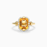 Anel De Noivado em Ouro 18k Solitario Citrino e Diamantes Brilhantes