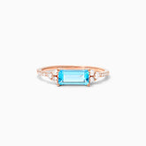 Anel De Noivado em Ouro 18k C/ Diamantes Brilhantes e Topazio Azul
