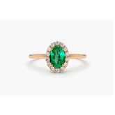 Anel De Noivado em Ouro 18k Solitario Esmeralda e Diamantes Brilhantes