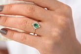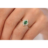 Anel De Noivado em Ouro 18k Solitario Esmeralda e Diamantes Brilhantes