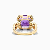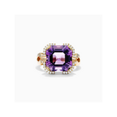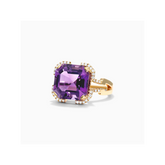 Anel De Noivado em Ouro 18k Solitario Ametista e Diamantes Brilhantes