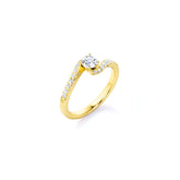Anel De Noivado Solitario em Ouro 18k c/ Diamantes Brilhantes Pave