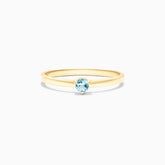 Anel De Ouro 18k Petite Topazio Azul Solitario Delicado Luxo