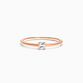 Anel De Ouro Rosa 18k Delicado Diamante Quadrado Solitario
