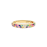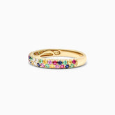 Anel aparador De Ouro Amarelo 18k Fileira Dupla de Safiras Coloridas