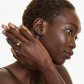 Anel Aberto De Diamante e Perola em Ouro 18k De Luxo
