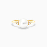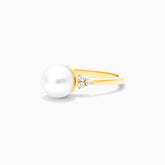 Anel Trio De Diamante C/ Perola em Ouro Amarelo 18k