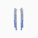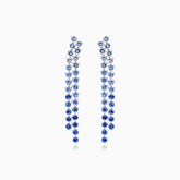 Brinco de Ouro 18k Cascata de Safiras Azuis Luxo Feminino