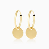Brinco De Argola C/ Disco Espendurado em Ouro 18k