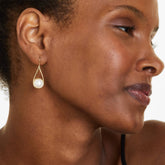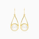 Brinco de Ouro 18k Pendurado de Perola Gota Espiral Luxo