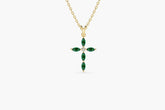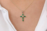 Colar Corrente Cruz de Esmeralda Luxo Feminino em Ouro Branco 18k
