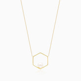 Corrente Feminina Pingente Hexagono C/ Perola Solitaria em Ouro 18k