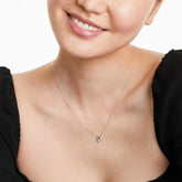 Colar Corrente Feminina em Ouro Branco 18k C/ Agua-Marinha Solitario