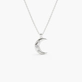 Colar Crescente Lua Corrente Luxo Feminino em Ouro Branco 18k c/ Diamante