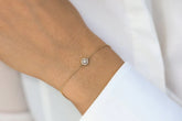 Pulseira Halo Feminina de Ouro Branco 18k Diamante Brilhantes Solitario