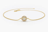 Pulseira Halo Feminina de Ouro Amarelo 18k Diamante Brilhantes Solitario